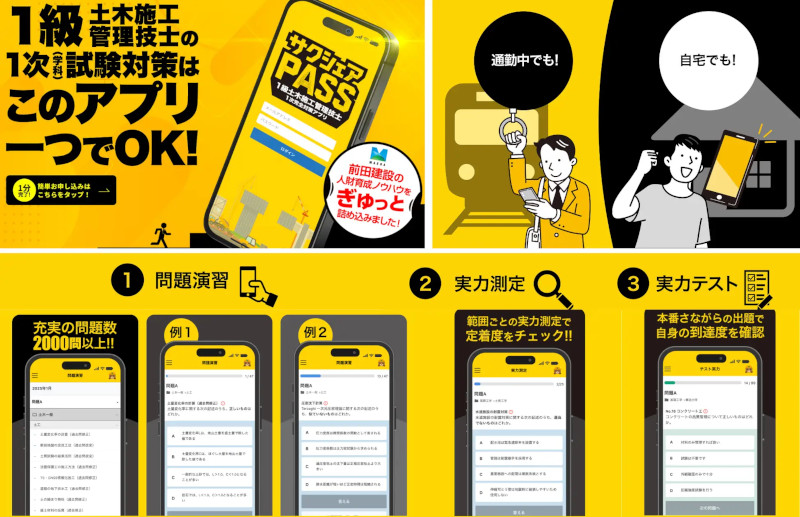 前田建設工業株式会社(本店:東京都千代田区、社長:前田操治)は、建設技術者の資格取得支援を目的とした学習アプリ「サクシェアPASS(サクシェア・パス)」を正式リリースする。 |