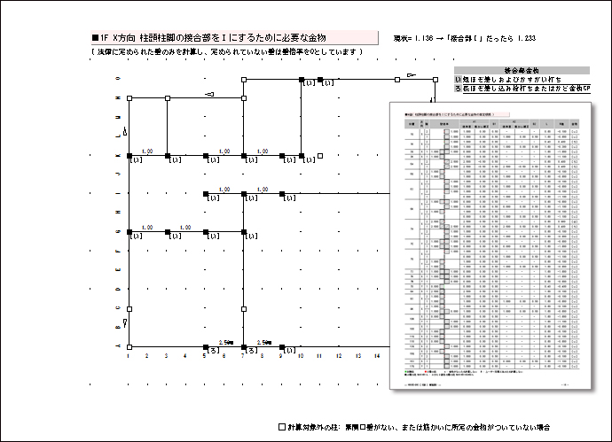 簡易的に引張力を求めて仕口の金物を選定する。出隅の柱を指定するだけで耐震診断計算と同時にN値を求め、仕口に必要な接合金物を見やすい表と平面図に出力する。※木造住宅の耐震診断・耐震補強計算ソフト「HOUSE-DOC」のVer.6が必要。 ※壁工法・柱接合部にカネシン製品のマスターをインストール可能。
