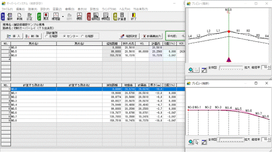 舗装切削・計算結果を見ながら、理想的な平均厚をシミュレーションできるため、横断計画までを自社で行うことができる。SIMAデータからの現況座標の取り込みに対応しているだけでなく、縦断設計では端部の縦断設計も可能。