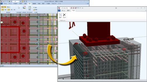BIMデータである“ST-Bridge”をインポートし、構造設計された配筋を自動的に3Dモデルにする。ワンクリックで3Dモデルを表示し、配筋や干渉を確認することが可能。