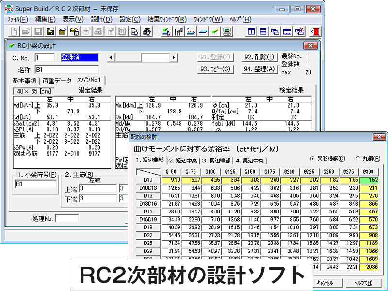対話形式入力によりRC造の床および小梁の検討を行うソフトウェア(プログラム)。