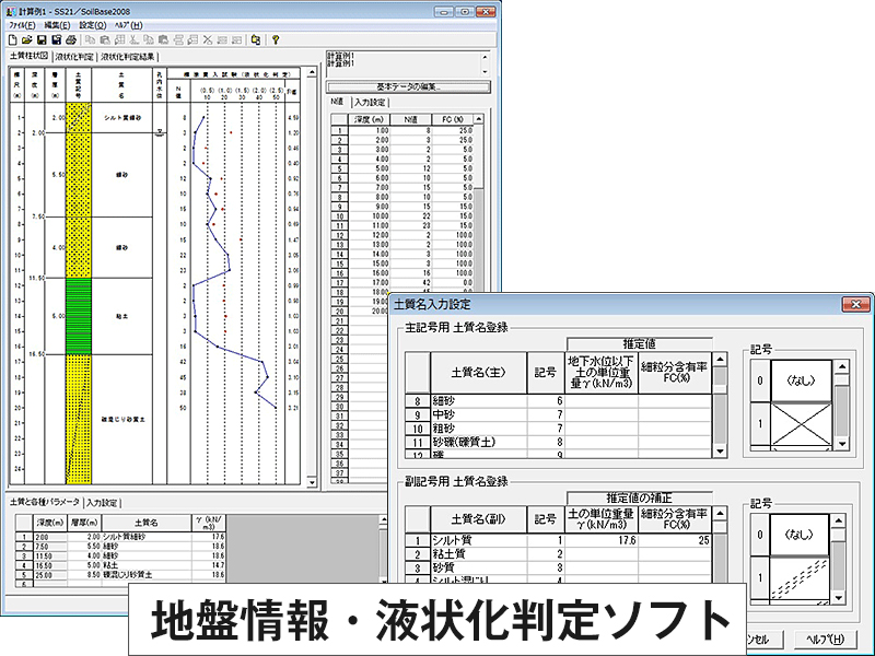各種地盤情報(N値、土質名、FC値、qu値、VS値、VP値等)を格納するデータベースソフトウェア(プログラム)。また「建築基礎構造設計指針(2001年版)」に基づいて液状化の判定を行うこともできる。 「SS21/ShakePRO-L」、「SS21/Dynamic表層地盤アンプリファイア2007」、基礎設計支援ソフトウェア(プログラム)「Super Build/BF1」、および今後開発される地盤情報を必要とするソフトウェアに地盤情報を提供。