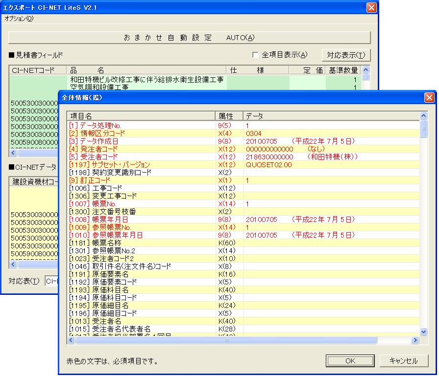 CI-NETデータの読込(部材置換)と書出が可能。CI-NET LiteS実装規約(V2.1)に対応。CII形式とCSV中間ファイル形式の両方に対応。見積書電子データを読込利用することにより、見積業務の大幅な時間の短縮を図ることができる。