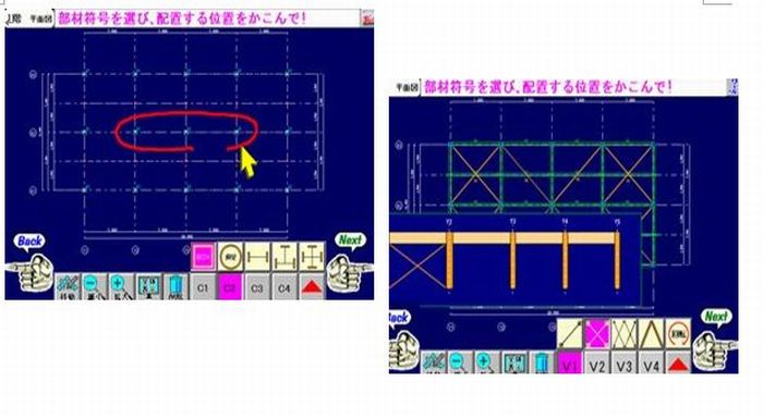 優れた操作性のCAD入力に対応。初心者にも分かりやすく、接合面等も図解で導く。ガイドに沿って入力するだけで材質/鋼材種別/規格ごとに重量・PL・AB・DPL・BS・HTB・階段・塗装面積・溶接長を瞬時に計測。図面を読み込み計測できる。