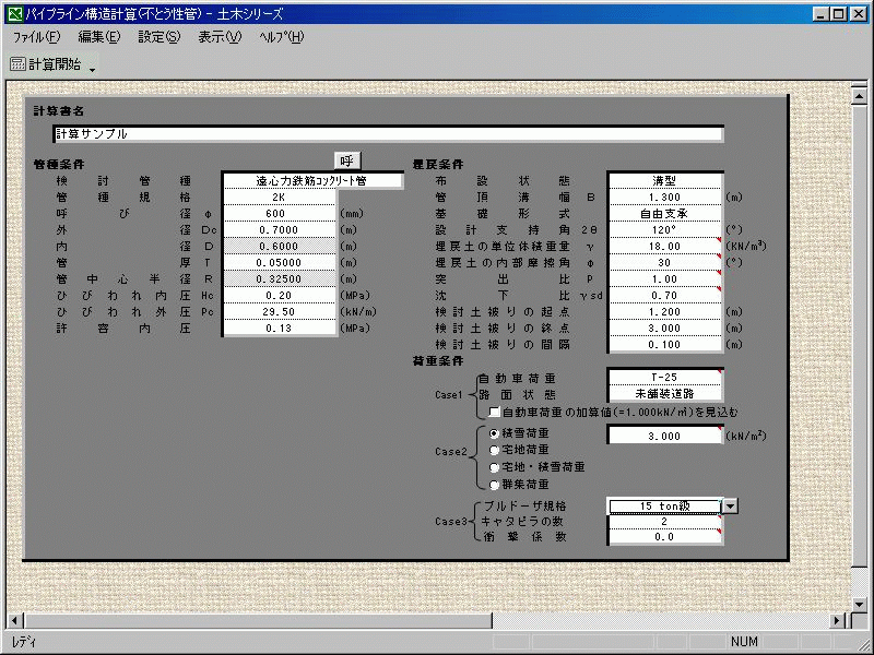 パイプライン構造計算ソフトの不とう性管バージョン。